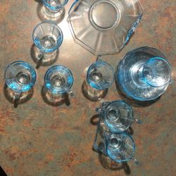 Fostoria Captiva Blue footed glass mugs or similar Anchor Hocking Cafe style mugs. $30Lexington, NC