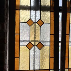 Two Wooden Stained Glass Windows - Primitive, Antique Amber and Clear$225Asheboro, NC