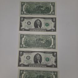 2017 Two Dollar Bills Series A, Lot of (5), Consecutive Serial #'s, Thomas Jefferson, Uncirculated$20Thomasville, NC