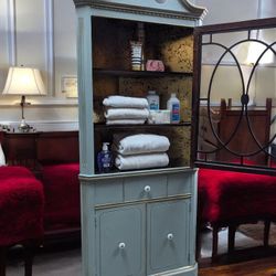 Vintage Corner Cabinet Duck Egg Blue, Gold Leaf Interior, Porcelain Knobs $250High Point, NC