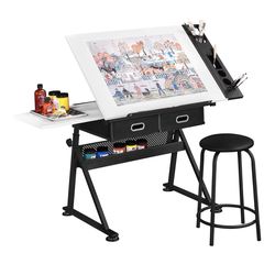 Yaheetech Height Adjustable White Art Desk for Adults, Tilting Tabletop Drafting Drawing Table with Extra Large Desktop and Drawers, Foldable Stand up$160Greensboro, NC