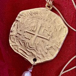 Gold And Pearl Medallion Necklace With Chain$65Greensboro, NC