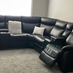 6 Seater Black Leather Couch With USB Charger Ports , Blue LED Lights , 2 Recliner Seats , Storage$600Greensboro, NC