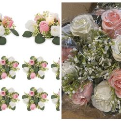 Flower Wreath for Table Centerpieces: 9.05 Inch Small Pink & White Candle Rings 10 Pcs for Wedding Party Christmas Decorations - Rose Wreaths for Spri$55Greensboro, NC