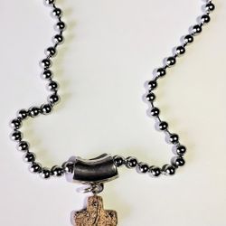 Men's 17.5" Picture Jasper Gemstone Cross 5mm Stainless Steel Ball Chain Pendant Necklace $28Greenville, NC