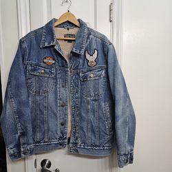 Awesome Vintage LEE Harley Davidson Patched Sherpa Lined Denim Trucker Jacket Mens M$80Jacksonville, NC