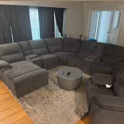 New Power Big Sectional Big Chaise And Glass Top Ottoman $1,899Greensboro, NC