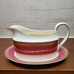 Oscar De La Renta Fine Ivory Imperial Ruby Gold Encrusted Japan Crafted Gravy Boat With Underplate $50Julian, NC
