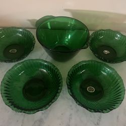Vintage Forest Green Anchor Hocking 5 PC Bowl Set$50Clemmons, NC