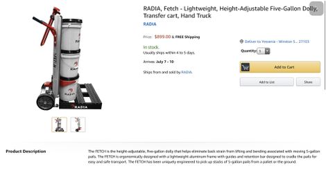 Five Gallon Dolly - New Retails $899.. only $250$250Winston-Salem, NC