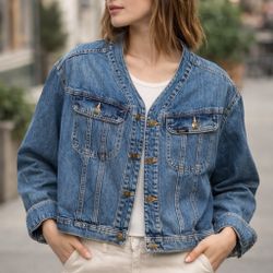 Women’s Lee Lapel-less Semi Cropped Denim Jacket-sz Large$30Greensboro, NC