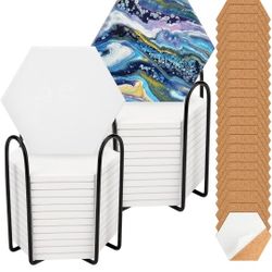 24 Pack Ceramic Tiles for Crafts with 2 Holders, White Unglazed Blank Ceramic Costers with Self-Adhesive Cork Backing Pads for Acrylic Pouring, Painti$20Greensboro, NC