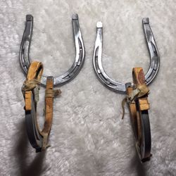 Set Western Horseshoe Rack Wall Hangers Hunt Texas Aluminum Leather $20Thomasville, NC
