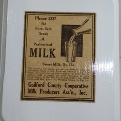 1930's Guilford Co. Dairy Ad$10Thomasville, NC