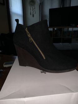 Lucky Brand Yeezah Wedge Black Suede Leather Ankle Boots Bootie Sz 7.5$20Greensboro, NC