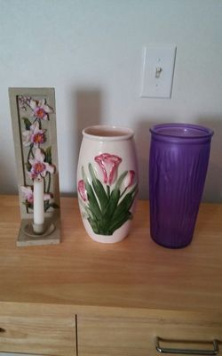 2 Decorative Vases and a Wall Hanging Candle Holder$20Trinity, NC