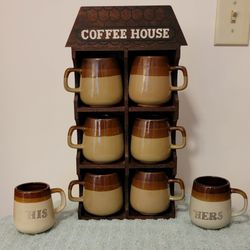 Vintage wooden Coffee house with 8 mugs total$40Summerfield, NC