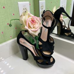 Women’s size 7.5. It’s OK black Faux Leather high heel Shoes pumps