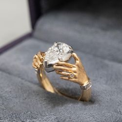Retro craft carving hands embrace zircon ring male and female friends gift closed mouth niche versatile ring hand jewelry$120Greensboro, NC