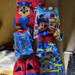 Three paw patrol pajama shirts one swimming trunk set of size slippers$20Greensboro, NC