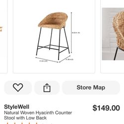 StyleWell Natural Woven Hyacinth Counter Stool with Low Back new $120Winston-salem, NC