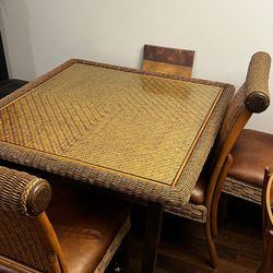 Ficks Reed Rattan 42” Table W/4 Swivel Chairs And 1 Bar Stool. Pretty Poppy Color $995High Point, NC