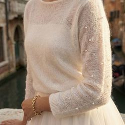 Bridal top overlay pearl bolero white sweater wedding dress topper bride pullover cozy sweater cover up for wedding dress bridal cardigan$100High Point, NC