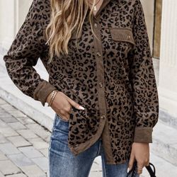 EMERY ROSE Women's Leopard Print Front Button Casual Long Sleeve Regular Jacket$20Thomasville, NC