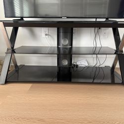 Modern Black Glass TV Stand – Fits Up to 55” TV Description: Modern black TV stand with tempered glass shelves and a sturdy metal frame, des$30Charlotte, NC