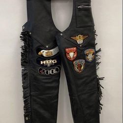 Harley Davidson motorcycles brand women’s extra small XS leather chaps with patches$100Charlotte, NC