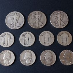 US Silver Assortment, Half Dollars & Quarters, 11 pcs.