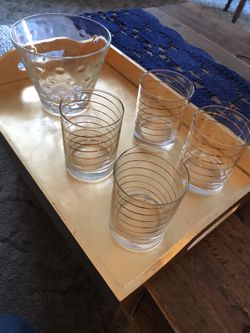 Wooden tray , drink glasses and ice bucket$25Concord, NC