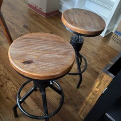 Pair Of Adjustable, Heavy, Wrought Iron Stools With Distressed Wood Tops$60Midland, NC
