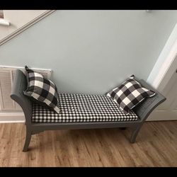 Grey Bench With Gingham Cushion And Pillows $100Concord, NC