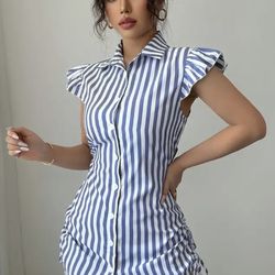 Womens / Girls Casual Shirt Dress Beachy White Blue Stripes S - M Stretchy NEW$8Statesville, NC