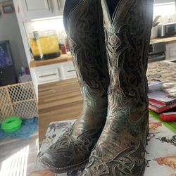 Women’s J.B. Dillon Distressed Teal Brown Cowboy Boots USA 10B$100Merritt, NC