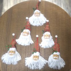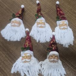 Vintage Santa Head Ornament by Greenbrier Intl Wool Beard 11" Christmas SET 6$15Jacksonville, NC