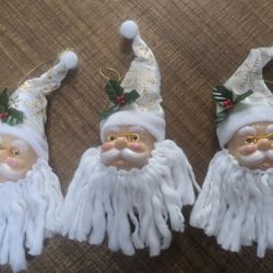 Vintage Santa Head Ornament by Greenbrier Intl Wool Beard 11" Christmas SET 3$9Jacksonville, NC