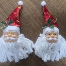 Vintage Santa Head Ornament by Greenbrier Intl Wool Beard 11" Christmas SET 2$6Jacksonville, NC