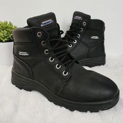Skechers Black Leather Lace-Up Work Boots Like New Size 7.5 Relaxed Fit Slip Resistant $40Jacksonville, NC
