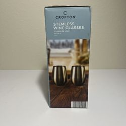 NEW in Sealed Box Crofton Stainless Steel Set of Two Stemless Wine Glasses Gold$12Morrisville, NC
