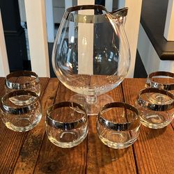 Vintage MCM Dorothy Thorpe-style brandy snifter pitcher and roly-poly glasses set (7)$75Youngsville, NC