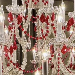 Extremely Large Maria Theresa Crystal Chandelier W 52" H 49" With Ruby Red Crystals /Silver, 37 Bulb$950Apex, NC