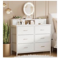 Modern white dresser with a sleek, minimalist design featuring six spacious drawers and a built-in lighted mirror. This piece doubles perfectly as a v$150Fuquay-varina, NC