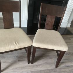 2 Dark Wood Dining Chairs with Beige Seats$10Greenville, NC