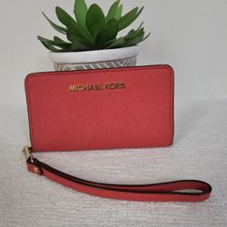 Michael Kors Bright Coral Saffiano Leather Wallet I.D Holder Wristlet$30Jacksonville, NC