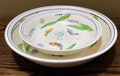 Set of 2 Homefront Hand Painted Pottery Serving Bowls from Thailand with Fish Design$21Wilmington, NC