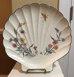 Jardin by Andrea Teal Scalloped Edge Floral Painted Seashell Platter$10Kirkland, NC