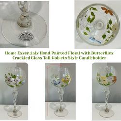 Home Essentials Hand Painted Floral with Butterflies Crackled Glass Tall Goblet Style Candleholder$12Wilmington, NC