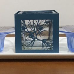 5 Piece Blue & White Glass and Metal Candle Holder Tray Set$16Wilmington, NC